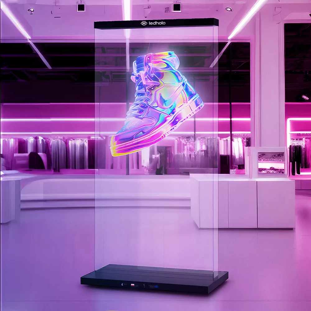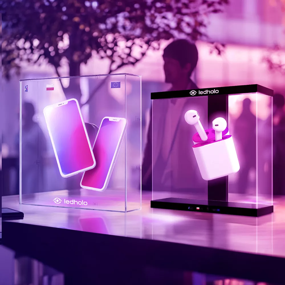 Projektor hologram 3D marki Ledholo to połączenie nowoczesnej technologii z estetycznym wyglądem. Nasze wyświetlacze holograficzne osiągają jasność aż do 1600 cd/m² i zapewniają doskonałą widoczność nawet w jasnych pomieszczeniach.
