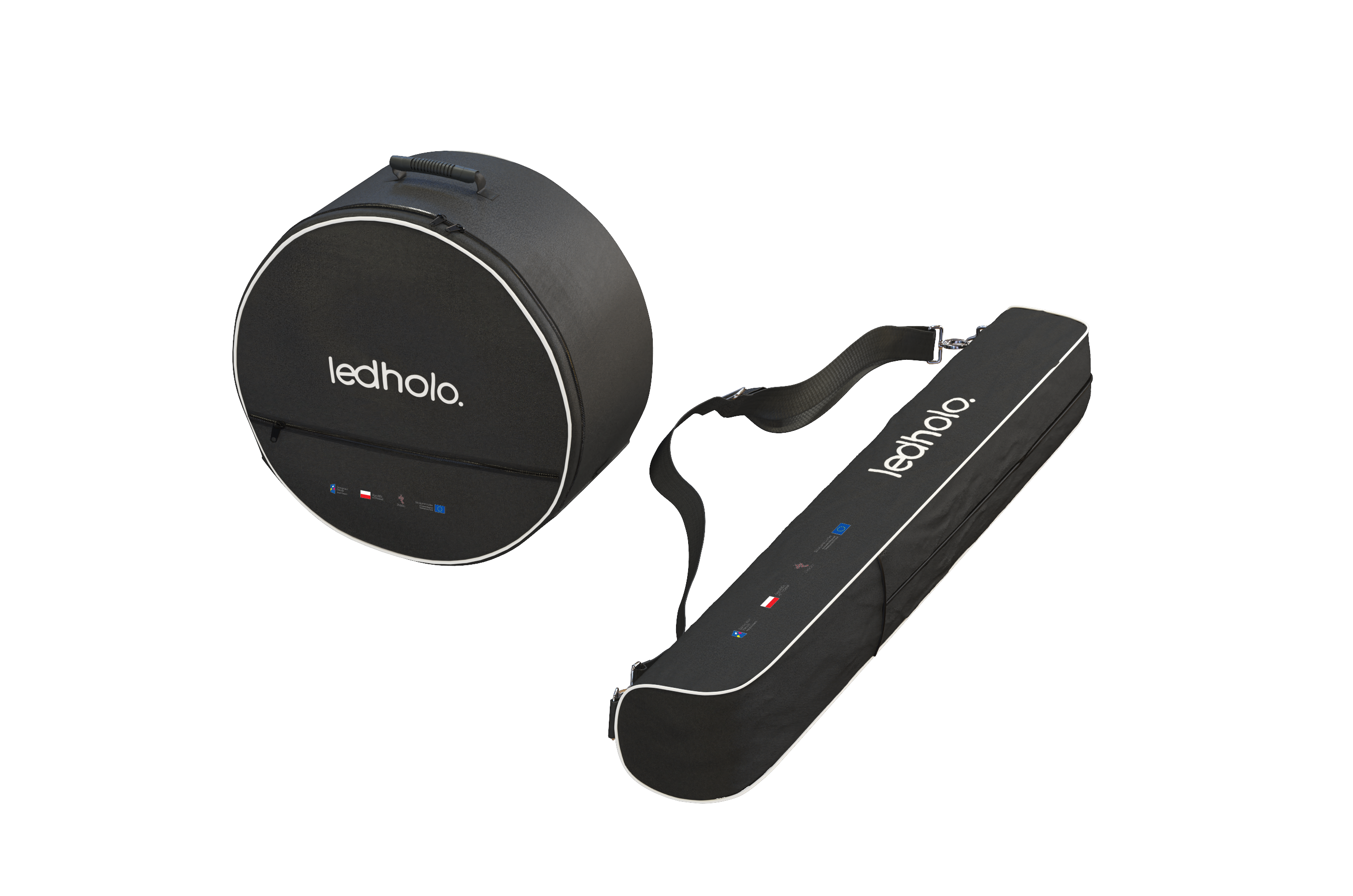 Cases for Ledholo displays and accessories do not protect against mechanical damage and are not applicable to courier shipments! Their role is only to facilitate personal transport and protect against minor abrasions. Ledholo displays can only be transported vertically. Transport "flat" may damage the emission unit! Safe courier transport is only possible using dedicated transport boxes (flight cases).