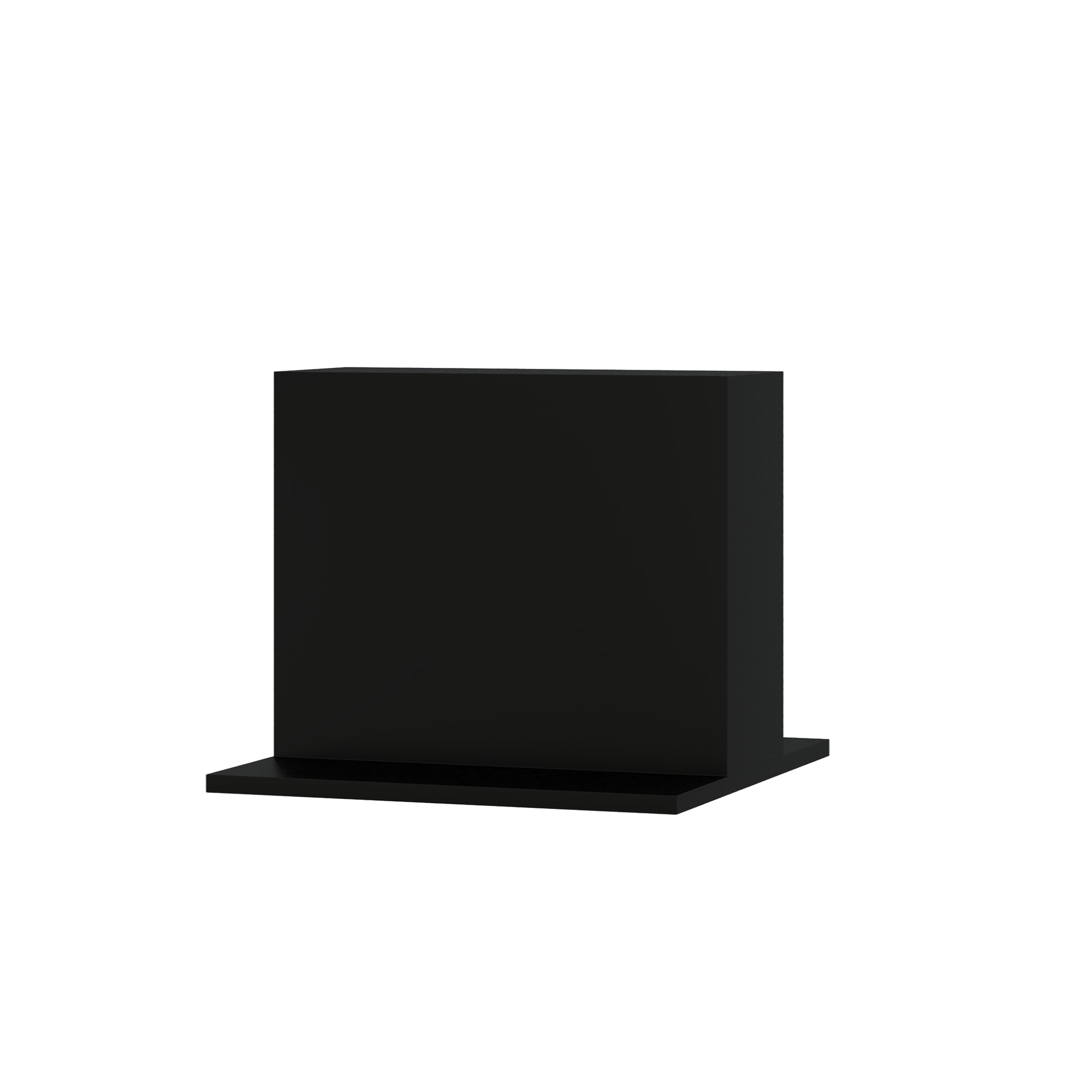 Un soporte dedicado a la Box 110 X, fabricado íntegramente en acrílico negro. La Box 110 X, sobre la base 110 X, crea una estructura de 220 cm de altura.